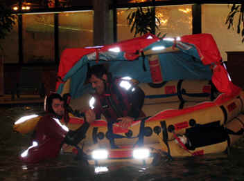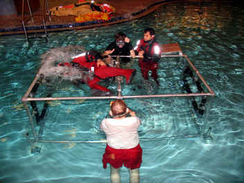 We signed up for a Underwater Egress and HEED training in addition to Emergency Water Landing training. This class was specifically designed to show us how to ditch an aircraft on cold water off of the North Atlantic Ocean in case we lose our engine and how to evacuate and survive until we are rescued.